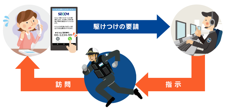 家の状況やご家族に不安なことがあるときセコムの対処員にご自宅の確認、ご利用者の安全確保を要請できます。